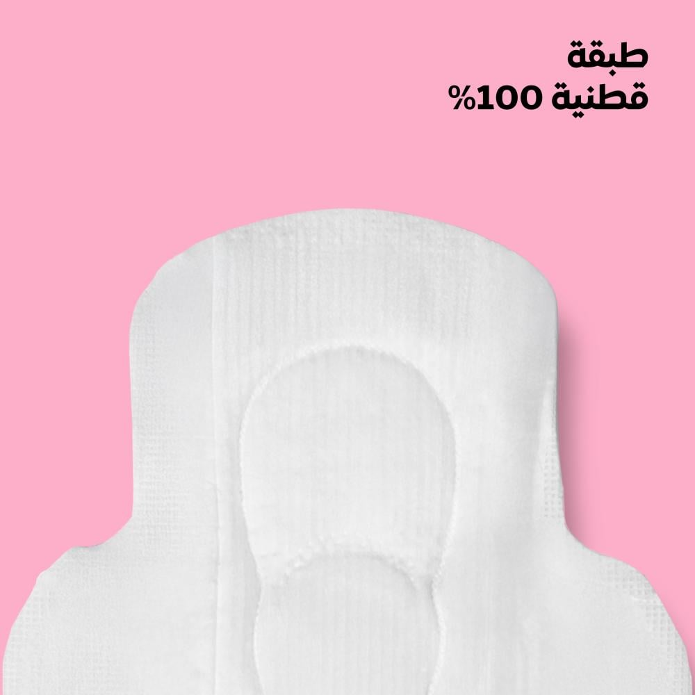 فوط صحية من مواد عضوية ومدعمة بطبقة علوية من القطن الطبيعي 100%، تؤمن لك أعلى درجات الراحة والمرونة والثبات.