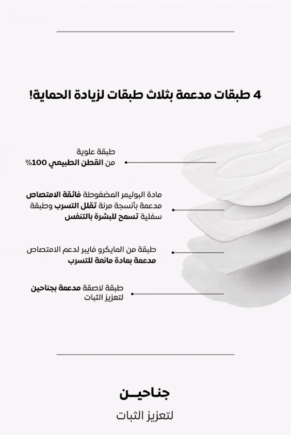 - طبقة لاصقة: مدعمة ب 2 أجنحة لثبات يناسب لحجمها.
