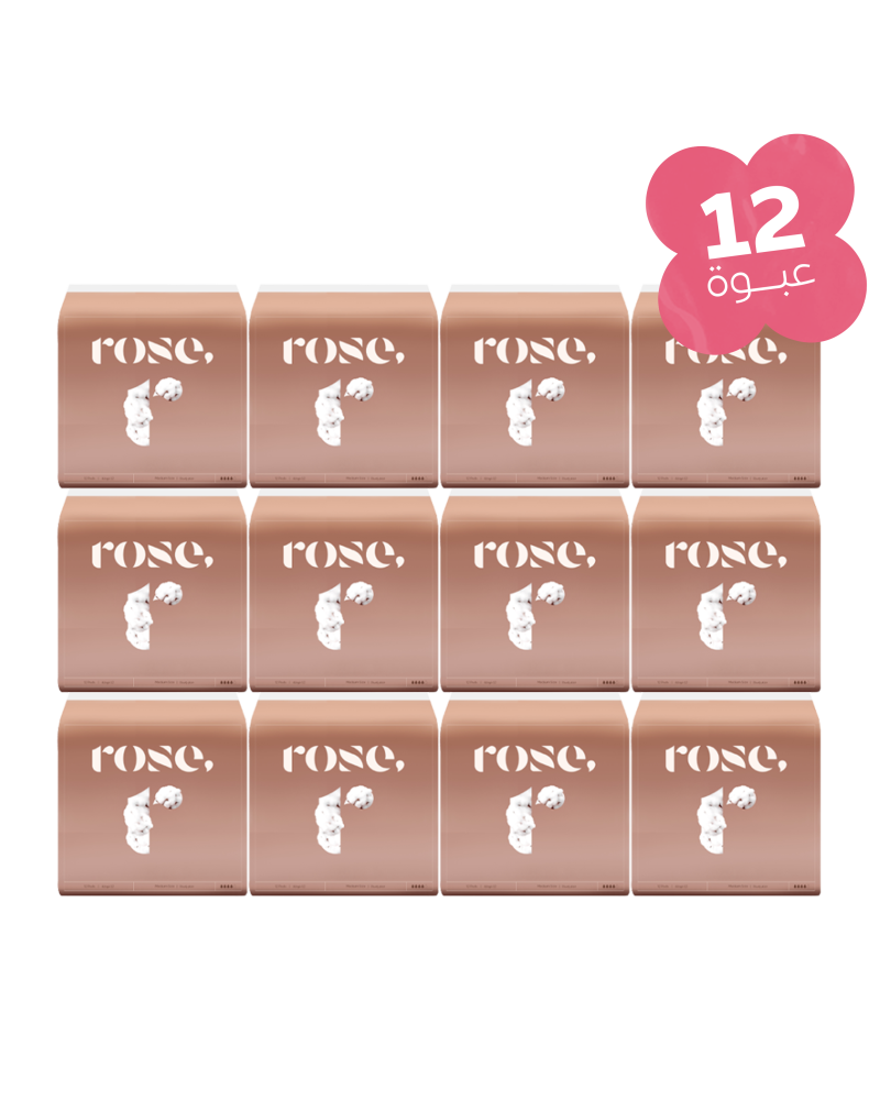 احصلي على توازنٍ واضح بين الحماية والخفة مع فوط نسائية روز حجم وسط – 12 علبة وفي كل علبة 12 فوطة بسطح قطن طبيعي وامتصاص مدروس لأيام الدورة الشهرية